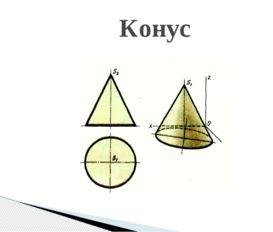 Цилиндр мен конус тіктөртбұрыштан және екі дөңгелектен тұрады. Жазбаның сызбасында тіктөртбұрышқа диаметрлері цилиндрдің табанының диаметрлеріне тең болатын екі дөңгелекті біріктіреді.